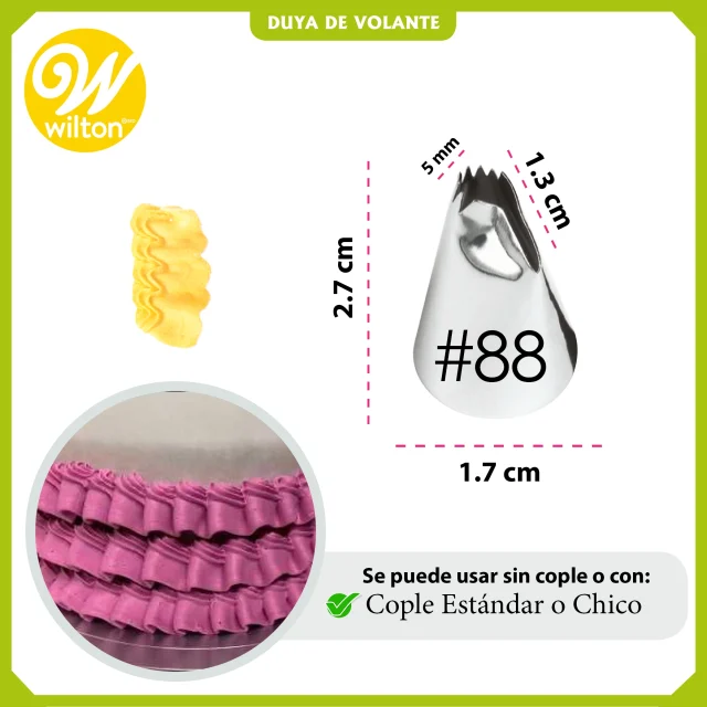 Ya seas un principiante o un experto en la cocina, esta boquilla te ayudará a lograr decoraciones impresionantes con facilidad. Incorpora la Duya Número 88 en tu kit de repostería y transforma tus creaciones en verdaderas obras de arte comestibles. Con esta herramienta, cada celebración se convertirá en una ocasión especial llena de sabor y estilo.