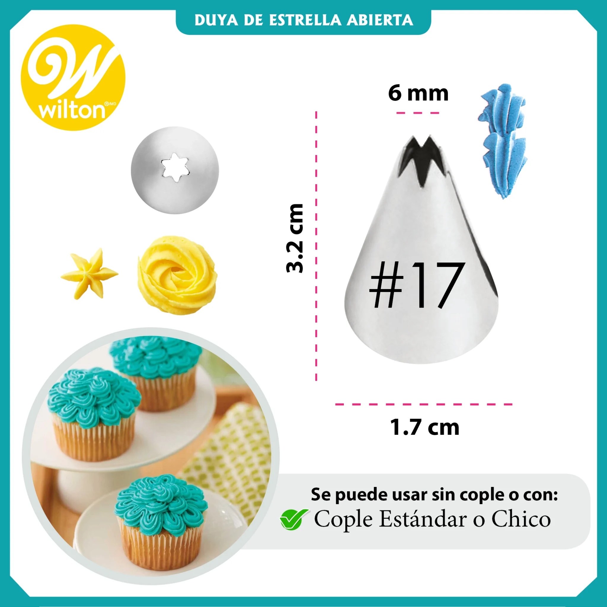 Duya #17 en forma de estrella para repostería La boquilla decorativa es perfecta para realizar hermosos decorados en tus pasteles y cupcakes.