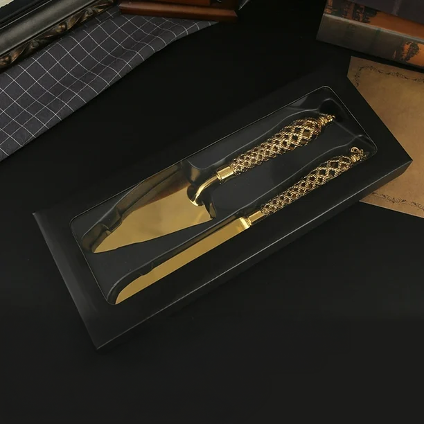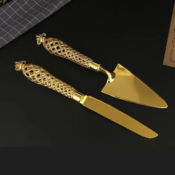 ESPATULA Y CUCHILLO PARA PASTEL COLOR ORO AC