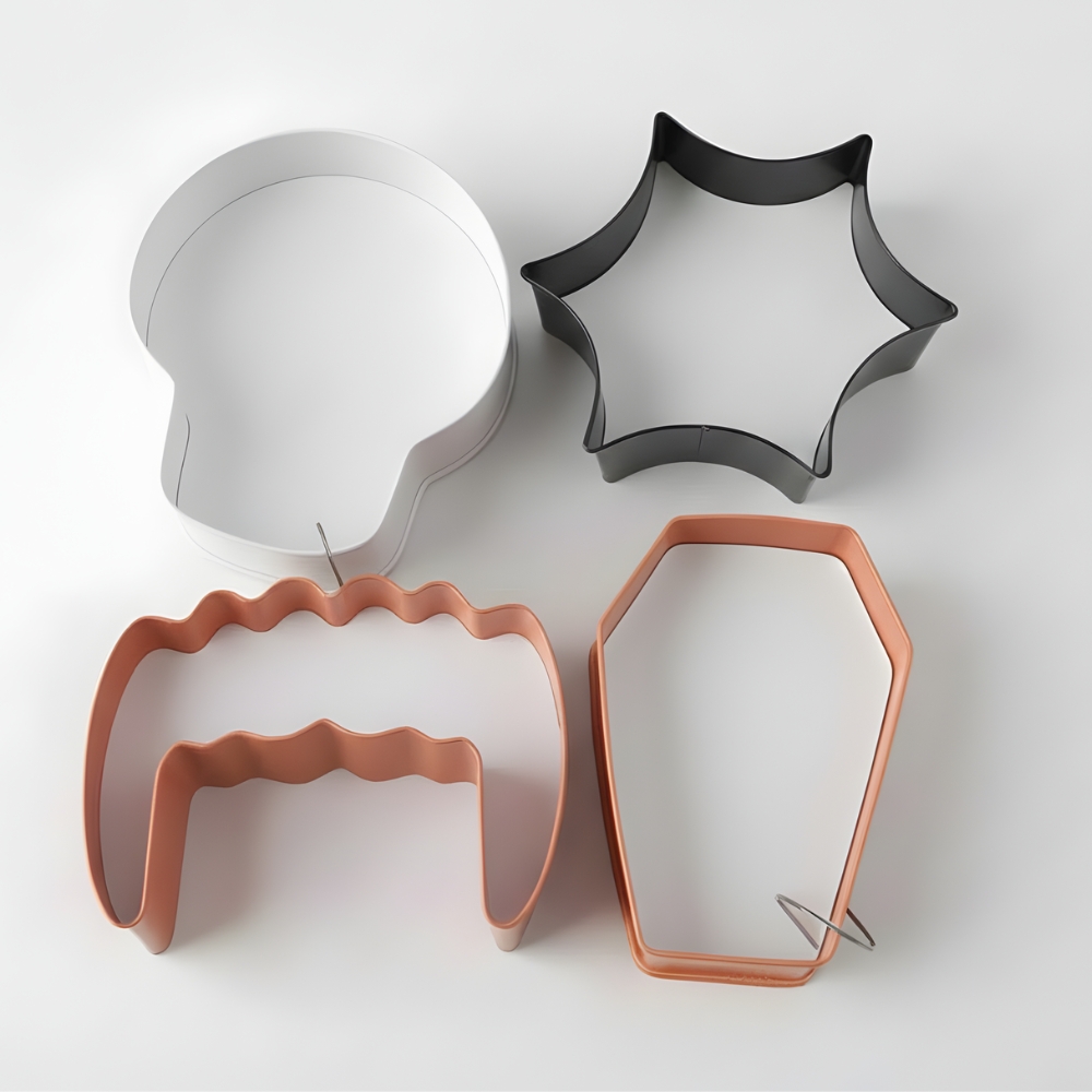 SET DE 4 CORTADORES CRANEO, TELARAÑA, COLMILLS, ATAUD