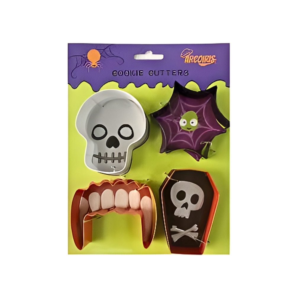 Kit de 4 Cortadores Cráneo,Telaraña,Colmillos, Ataúd Marca Arcoíris. 201864
